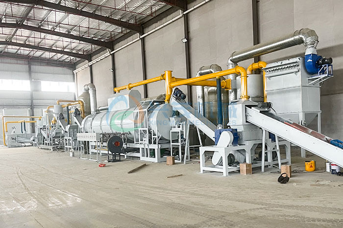 Waste lithium batteries are first sent through the conveyor to the first-class shredder for effective shredding, shredded materials need to be sent through the conveyor to the second multi-knife crusher for a second crushing, through the second crushing of materials if sent to the conveyor again. There is professional magnetic separation equipment inside the equipment, this step is to separate the iron contained in the material. After the separation of the material and then the conveyor to the airflow sorting machine, after the need to pass through the induced draft fan and cyclone under the feeder. This process is to effectively separate the diaphragm paper from the positive and negative pieces of used batteries, and then transport the sorted positive and negative pieces to the three-stage shredder for fine crushing again, the material needs to be crushed to about twenty mesh. After crushing the material and then by the negative pressure system tree hole to the cyclone separator in the filter, from the process is to carry out the powder. Dust filtration is mainly through the airflow sorting, this process to be carried out twice. According to the different density of the material to be effectively layered processing, so that you get the positive and negative pieces with copper, aluminum, nickel and other material materials, and finally all the ultra-fine dust for collection. Then it is transported to the pulse dust collector through the negative pressure system for effective collection. The filtered exhaust gas is then transported through the negative pressure system to the exhaust gas treatment equipment for air purification, and after treatment, it reaches the national emission standard for high altitude emission.
